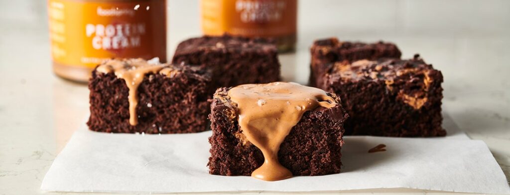 - Nota: Si prefieres un batido más ligero, puedes agregar más leche. Puedes usar tu receta favorita de brownie, pero los brownies de caramelo salado en sartén quedan increíbles en este batido.