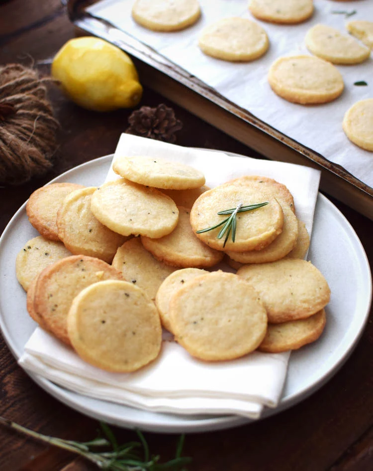 Galletas de mantequilla, limón y romero: galletas crujientes y mantecosas, perfectas para la hora del té o en cualquier momento.