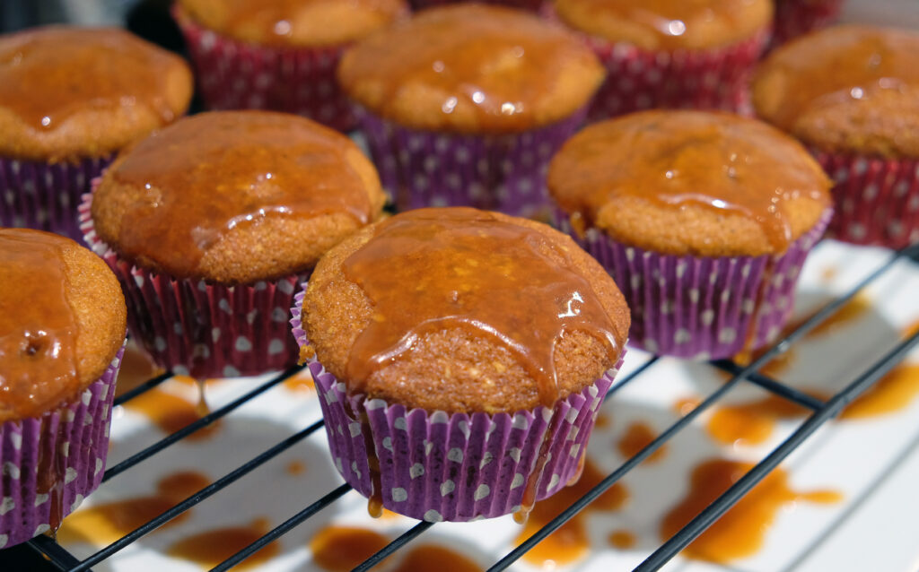 Magdalenas de calabaza con mantequilla dorada y glaseado de caramelo salado