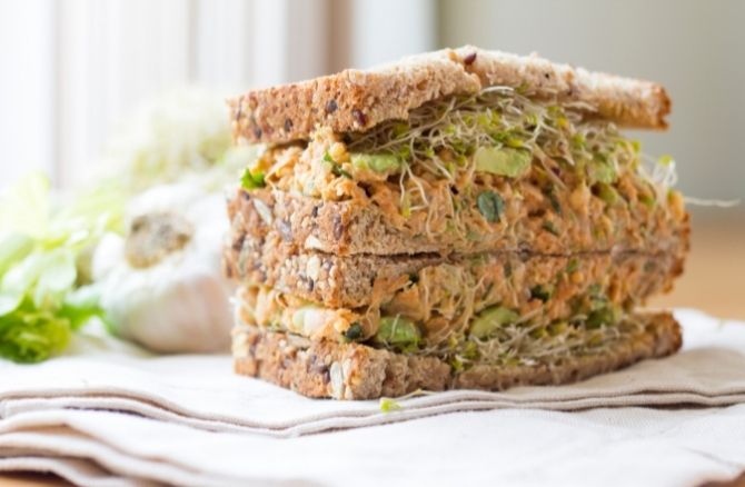 - Sándwich de ensalada de garbanzos machacados y aguacatede Dos guisantes y su vaina
