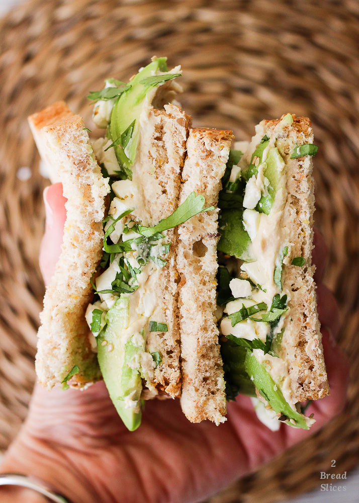 Sándwich de hummus de pimiento rojo asado, aguacate y queso feta