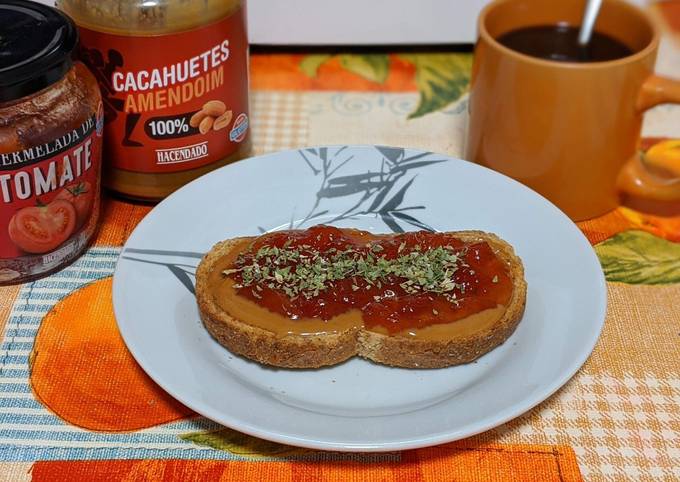Tostada de canela con mantequilla de cacahuete y mermelada